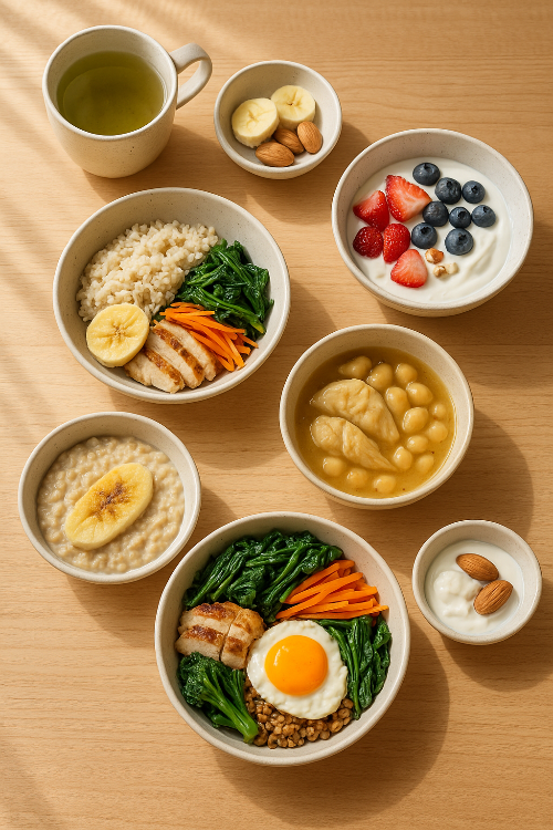 | 아침 | 오트밀죽, 그릭요거트 | 공복 안정 + 대사 촉진 |